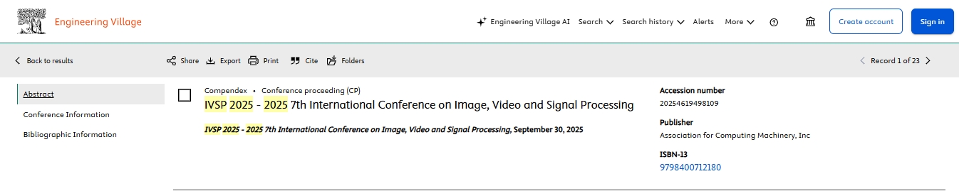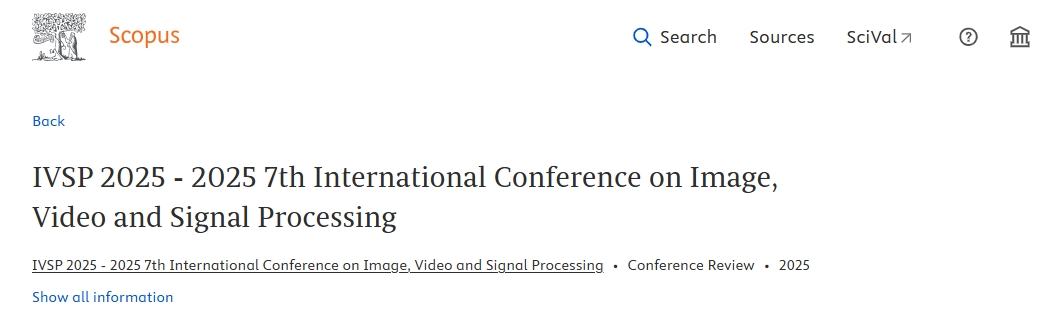 November 19, 2025 News! IVSP 2025 papers have been indexed in EI compendex and Scopus!