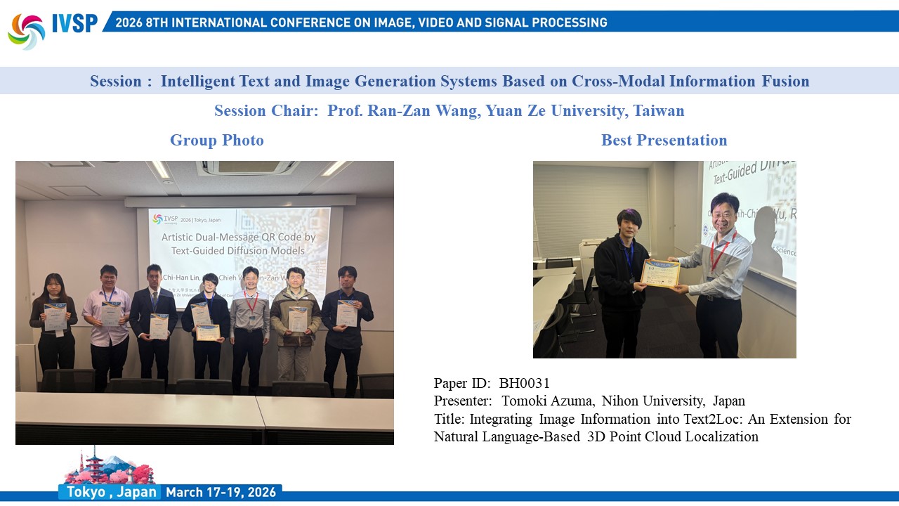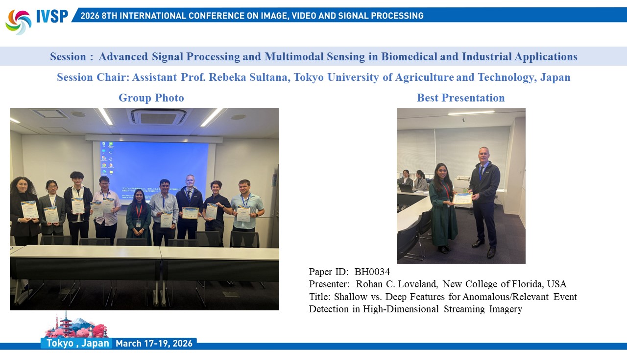 2027 9th International Conference on Image, Video and Signal Processing was held successfully online and offline combination in Meiji University (Surugadai Campus), Tokyo, Japan.during March 17-19, 2026. Thanks for all your contribution to IVSP 2026.