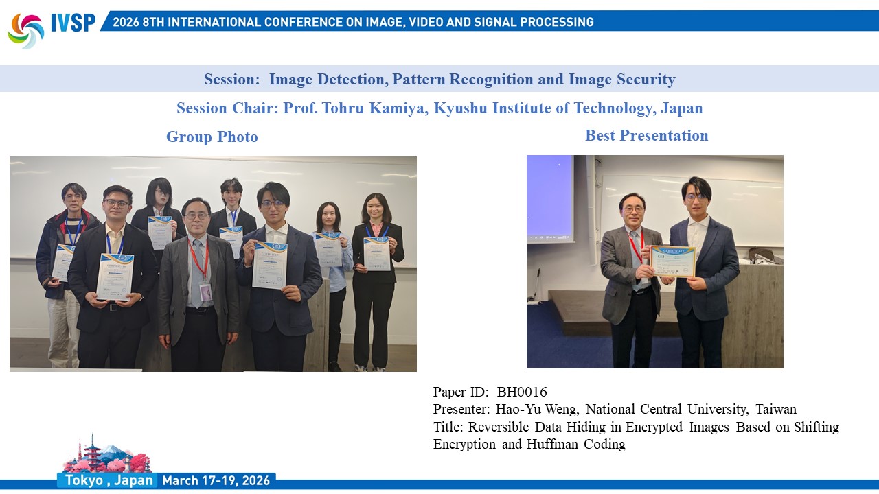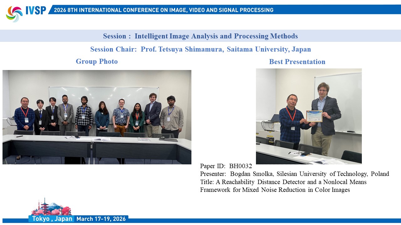 2027 9th International Conference on Image, Video and Signal Processing was held successfully online and offline combination in Meiji University (Surugadai Campus), Tokyo, Japan.during March 17-19, 2026. Thanks for all your contribution to IVSP 2026.